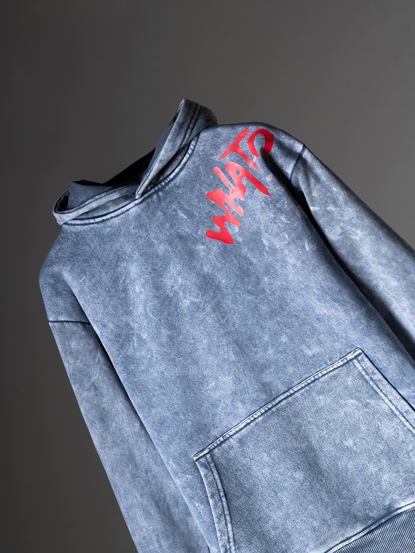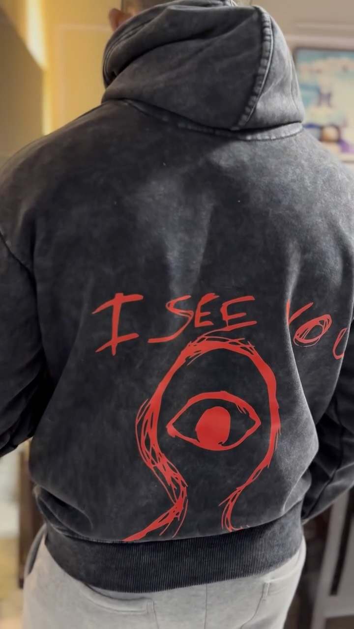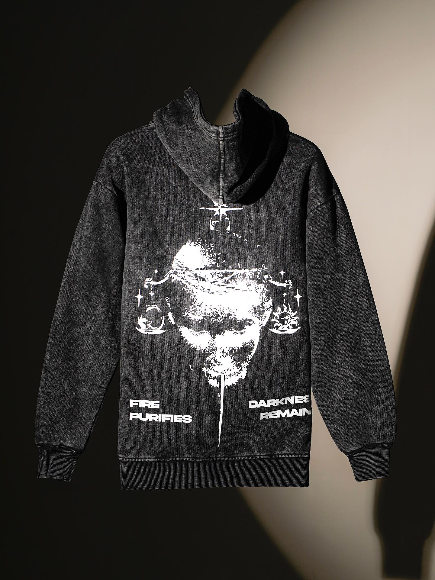 WavyCouture Black Printed Acid Wash Cotton Hoodie