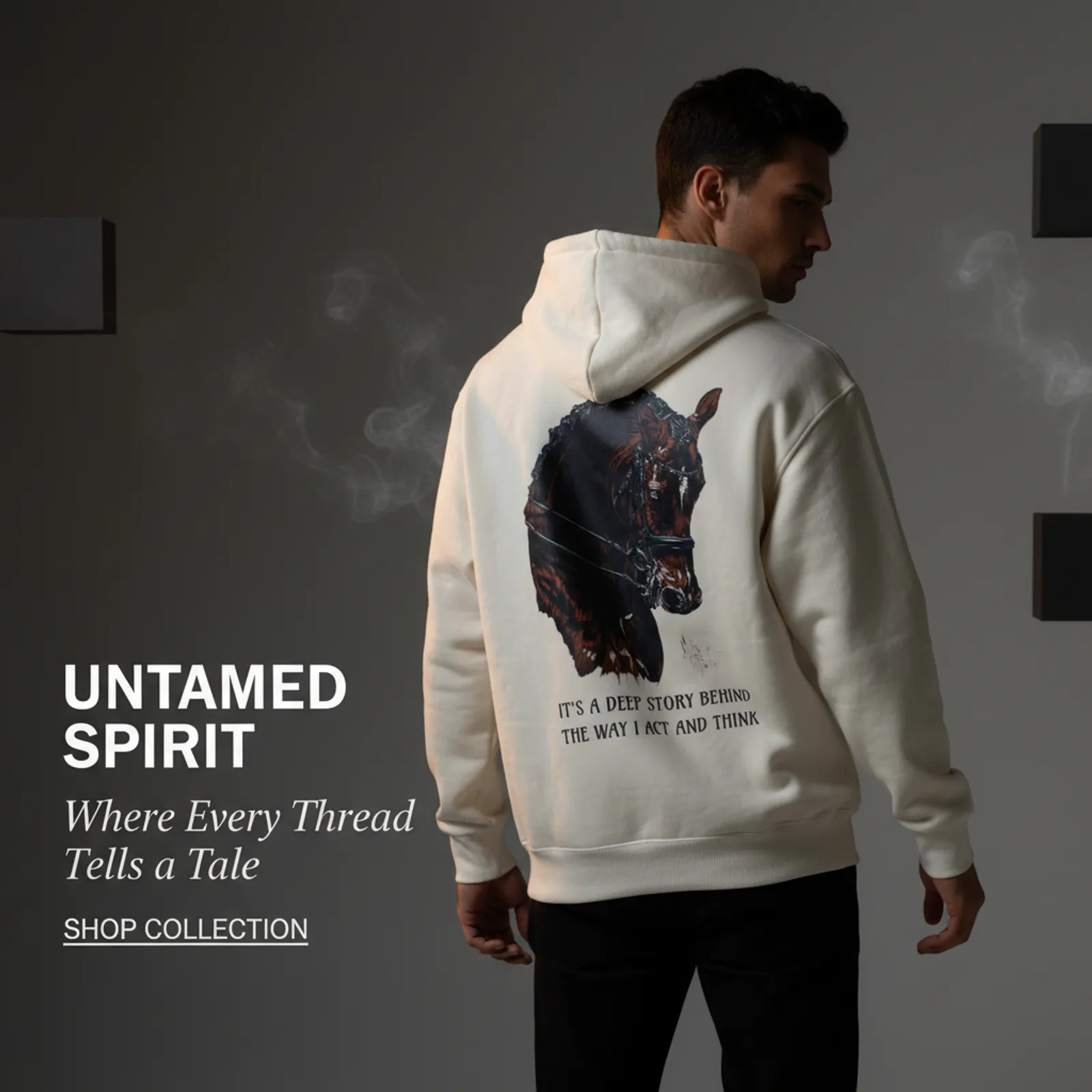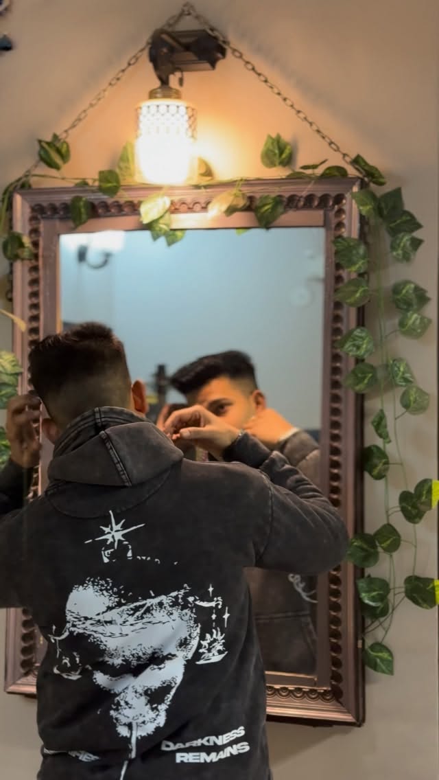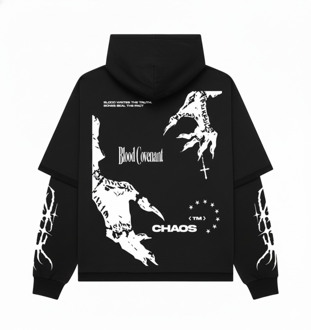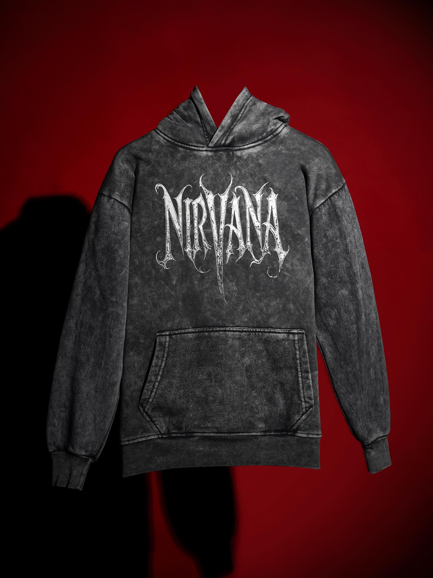 WavyCouture Black Printed Acid Wash Cotton Hoodie