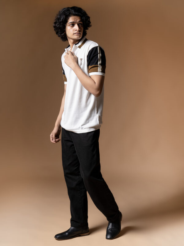 WavyCouture Cotton White Stripped Collor Polo T-Shirt