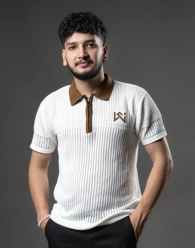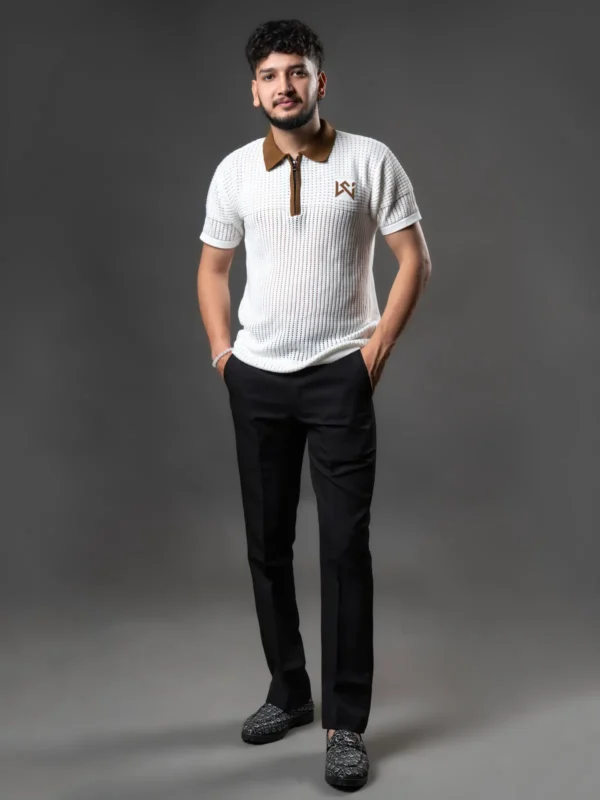 WavyCouture Cotton White Chain Collor Polo T-Shirt