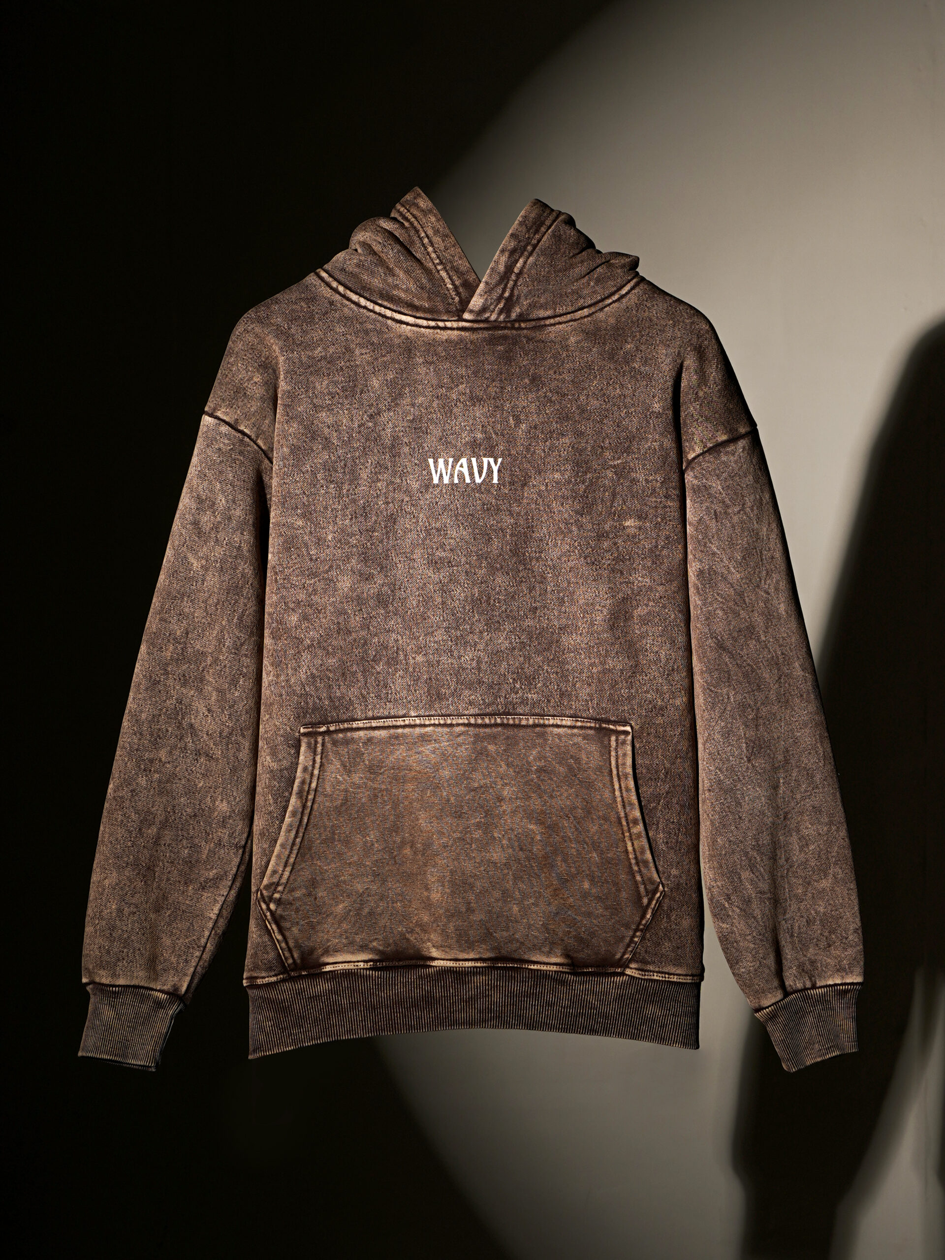 WavyCouture Premium Cotton Brown Acid Wash Hoodie
